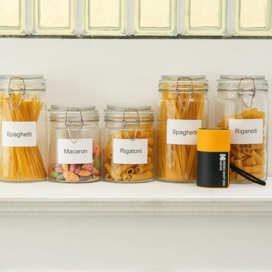 Sada etiketových kaziet kompatibilných s fotoaparátom KODAK Memo Shot Era obsahuje 9 rolí: 6 bielych, 1 zelenú, 1 ružovú a 1 žltú. Každá role umožňuje tlač až 30 etikiet.