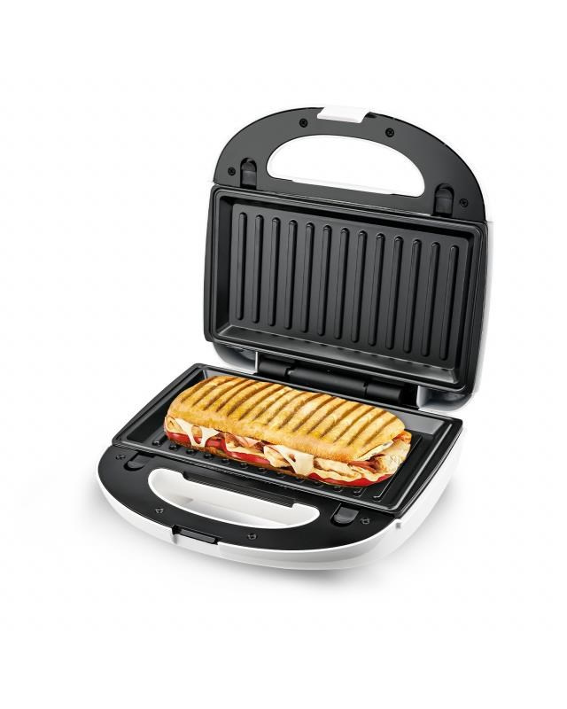 Trendom v kuchyni sa stávajú multifunkční pomocníci, ktorí nezaberú veľa miesta, ale dokážu toho veľa. Súčasťou multifunkčného sendvičovača Orava ST-500 je až päť rôznych pečiacich platní, čo oceníte pri príprave rýchlych teplých jedál, ktorých sa dospelí aj deti nemôžu nabažiť. Čo sa týka prípravy sýtej raňajky, rýchlych večerí alebo sladkého občerstvenia ako odmena po celodennej práci, je čas ho vybrať z poličky. Vďaka príkonu 750 W v ňom rýchlo pripravíte lahodné toasty pre svojich blízkych, ugrilujete kurča, upečiete panini, pripravíte sladké vafle, zbožňované donuty a sladké pečivo vo forme nápaditých lastúr vlastnej výroby. Stačí si vybrať jednu z piatich priložených platní, ktoré vďaka posuvným zámkom bez námahy a bezpečne vložíte do spotrebiča - a príprava jedál môže začať. Hoci spotrebič pečie a zapeká, môžete si byť istí, že je o vašu bezpečnosť postarané. Spotrebiču chýba tepelná poistka a dostatočne veľká rúčka je navyše tepelnú izolovaná. Červená alebo zelená kontrolka jasne ukazuje, kedy topinkovač pracuje na plné obrátky. Vďaka nepriľnavému povrchu sa navyše pečiace platne ľahko čistia, čo z neho spolu s širokými možnosťami prípravy jedál robí topinkovač, ktorý si v kuchyni obľúbite.