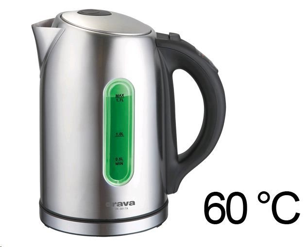 Nerezová rýchlovarná kanvica VK-3817 A s príkonom 2000 W a objemom 1,7 l. Kanvica umožňuje elektronicky regulovať teplotu vody, zohrievať na vopred zvolenú teplotu. Nastavenie 5-ich rôznych teplôt a stupnice sa mení podľa farieb.