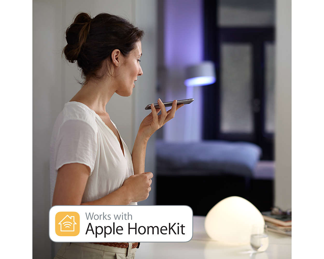 Systém Philips Hue je kompatibilný so systémami Amazon Alexa, Apple HomeKit a Google Home (funguje na platforme Google Assistant). Osvetlenie je tak možné ovládať aj hlasom. Môžete ich zapínať aj vypínať, alebo dolaďovať dokonalú atmosféru úpravou jasu. Môžete si vybrať dokonca aj z prednastavených scén. Môžete tiež meniť farby a ešte oveľa viac. Bez toho, aby ste hnuli prstom.