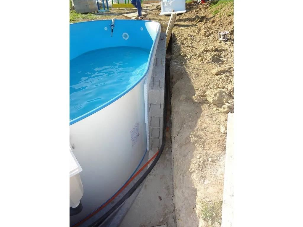 Postavený bazén odporúčame odizolovať (napríklad Styrodur) a zasypať suchým betónom.