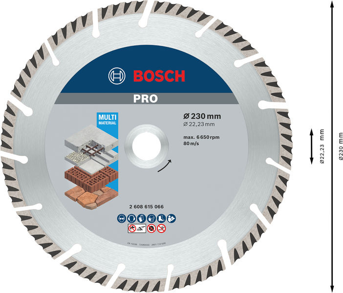Vydrží až 1,5× dlhšie ako kotúč Bosch Eco for Universal - Univerzálny diamantový rezací kotúč je pre profesionálov na stavenisku nepostrádateľný. Diamantový rezací kotúč PRO Multi Material sme vyrobili dostatočne pevný, aby si poradil s akékoľvek materiálom, ktorý potrebujete rezať. Pokročilé konštrukčné prvky zabezpečujú, že kotúč PRO Multi Material vydrží dlhšie ako bežné diamantové kotúče. Segmenty s nízkym trením minimalizujú opotrebovanie na strane kotúča a rýchlo odsávajú prach z oblasti rezu, čím zabezpečujú dlhodobý výkon. S otvorom 22,23 mm pre štandardné uhlyové brúsky s pojistnou maticou