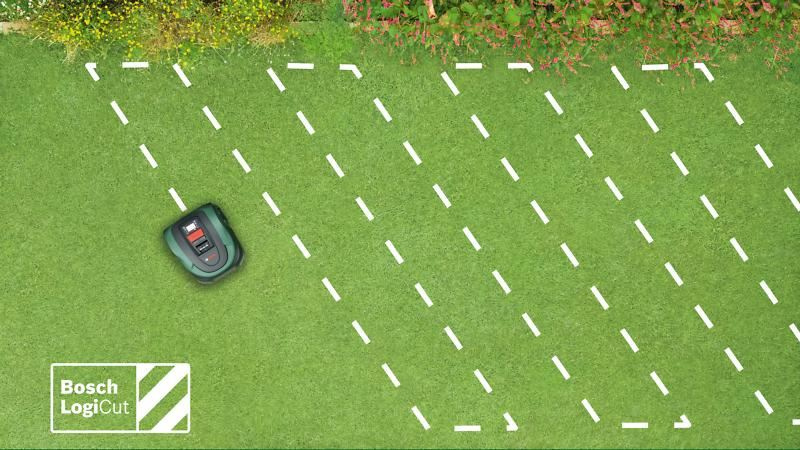 Indego S+ 500 s funkciou LogiCut mapuje trávnik a režie v efektívnych rovnobežných pruzích, a tak máte trávnik k dispozícii skôr.