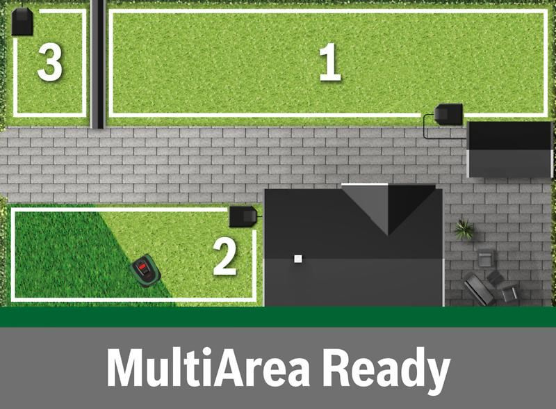 Vďaka funkcii MultiArea si kosačka Indego môže do pamäti uložiť až tri trávnaté plochy (do celkovej rozlohy 500 m2).