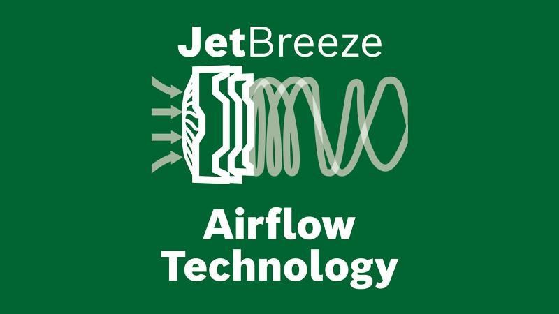 Silný prúd vzduchu, dlhá doba chodu a nízka hlučnosť s technológiou Bosch JetBreeze Airflow