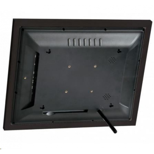Digitálny fotorámček s uhlopriečkou 15", LED podsvietenie, rozlíšenie 1024x768px, 4:3, prehliadanie obrázkov vo formáte JPEG/BMP/PNG, počúvanie hudby MP3 a prehrávanie FullHD videa MPEG1/2/4, AVI, DIVX, MOV, RMVB, slot SD/MMC a USB2 flash, Audio out/HDMI/AV in, Auto Start/ON/OFF, OSD menu, diaľkový ovládač, čierne drevo. Funkcie: SlideShow (prehliadka obrazov), budík, hodiny, kalendár, podpora Scroll-Text. Rozmer: 366x292x35 mm, hmotnosť 1000 g. Možnosť upevnenia na stenu (VESA 75x75mm) alebo našroubovanie stojánka. Súčasťou dodávky je sieťový zdroj AC/DC 12V/1,5A, diaľkový ovládač.