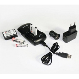 Univerzálna nabíjačka Li-lon akumulátorov a NiMH AA/AAA článkov s posuvnými kontaktmi (ľahké ovládanie) v naozaj minimálnych rozmeroch. Funkcia Battery Activator pre úplne vybitie akumulátory, nabíjací prúd 1000 mA. Vrátane USB kábla, USB sieťového zdroja a USB adaptéra do auta, ktoré je možné samostatne použiť aj na nabíjanie mobilných telefónov / MP3 / iPhone a ďalších prístrojov.