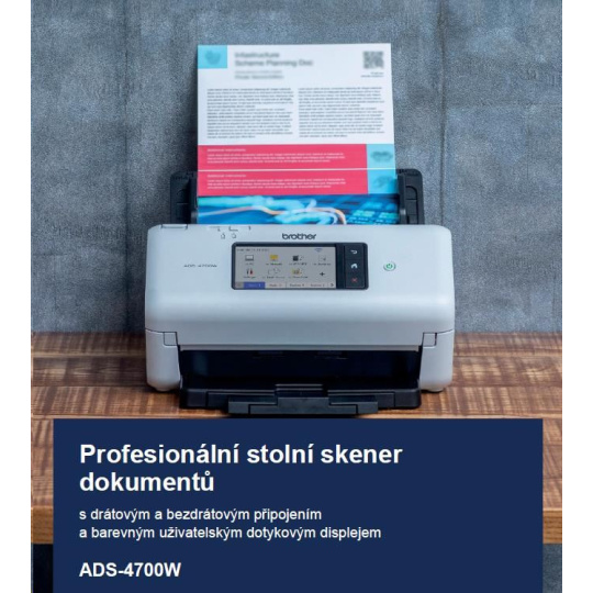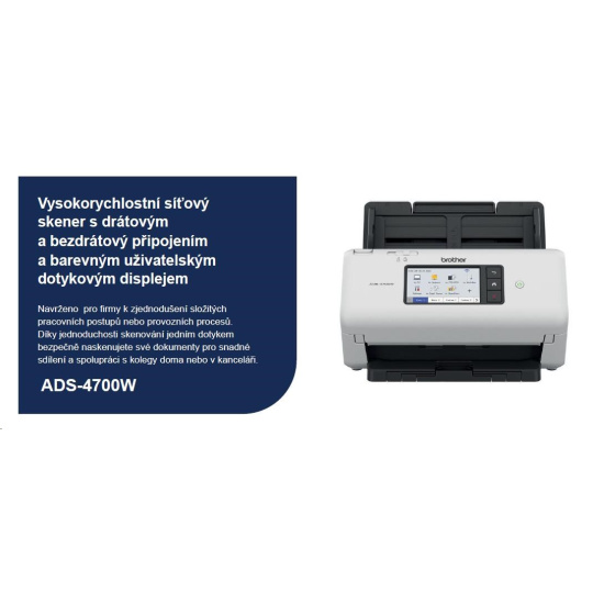 BROTHER skener ADS-4700W DUALSKEN A4 40 str./min/80duálny 600x600 60ADF USB LAN WIFI - displej 10.5cm