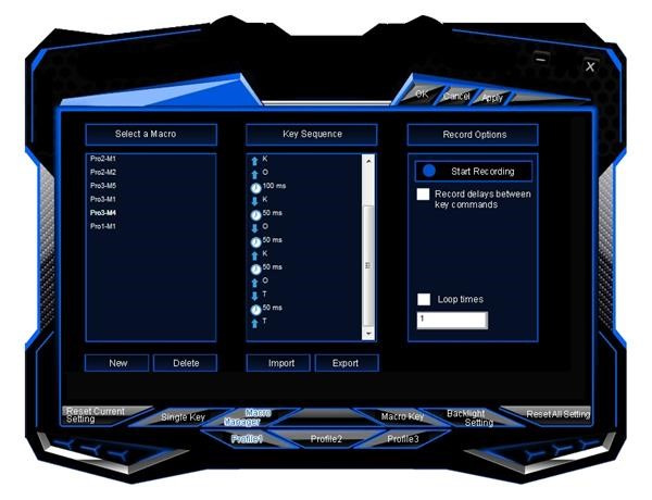 Živé nahrávanie makier - pomocou tejto funkcie môžete nahrávať makrá priamo z klávesnice a priradiť ich konkrétnemu tlačidlu