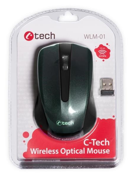 Myš C-TECH WLM-01, čierna, bezdrôtová, USB nano prijímač