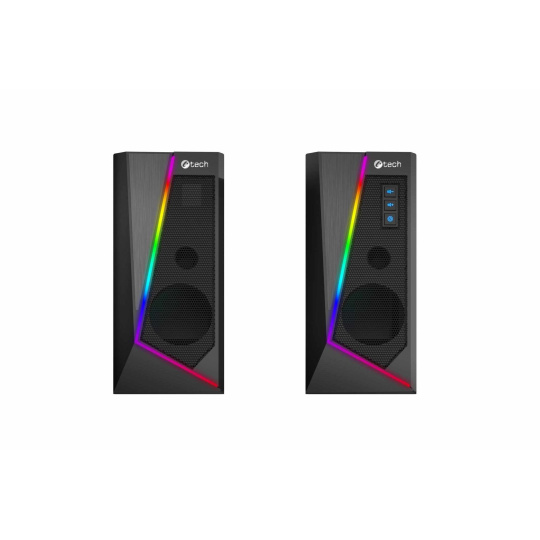 Stolové reproduktory C-tech SPK-17 s elegantným dizajnom a decentným RGB osvetlením sa stanú štýlovým doplnkom každého pracovného stola. Vďaka 40mm meničom s širokým frekvenčným rozsahom doprajú vašim uším veľmi kvalitnú reprodukciu. RGB osvetlenie disponuje 6 rôznymi svetelnými režimami, ktoré vám zaručia originálne vizuálne zážitky. Voľba režimu je veľmi jednoduchá a to dotykom na hornú plochu riadiaceho reproduktora. Reproduktory pripojíte k počítaču pomocou 3,5mm audio kábla a nemusíte si robiť starosti ani s prídavným napájaním, pretože reproduktory C-tech SPK-17 sú napájané priamo z USB vášho počítača a tak sa vám automaticky spustia či vypnú spolu s počítačom či notebookom. K ovládaniu hlasitosti poslúžia tlačidlá nachádzajúce sa na jednom z reproduktorov. Spoločne s ovládaním hlasitosti je možné stlačením ďalšieho tlačidla vypnúť RGB podsvietenie reproduktora.