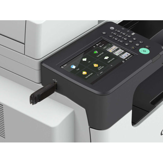 | Zabezpečenie siete | TLS, IPSec, overovanie IEEE802.1X, SNMP verzia 3, funkcia firewall (filtrovanie IP/MAC adries), podpora dvoch typov sietí (drôtová LAN/bezdrôtová LAN), aktivácia/deaktivácia (sieťové aplikácie, vzdialené používateľské rozhranie, rozhranie USB), oddelenie faxu G3 od LAN, oddelenie portu USB od LAN, skenovanie a odosielanie - s ohľadom na možnosť zavádzania prijatých e-mailových správ |