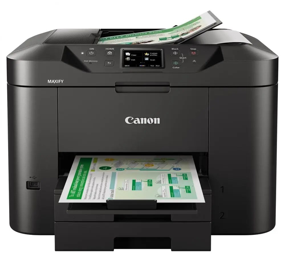 Plnohodnotná tlačiareň, skener, kopírka a fax určené pre domácu kanceláriu. Zariadenie Canon MAXIFY MB2750 Series má veľký zásobník na 500 listov papiera a automatický podávač dokumentov na 50 listov. Toto zariadenie používa atramenty DRHD odolné voči zvýrazňovačom a oderu a tlačí sýto čierne farby, živé farby a ostrý text vo vynikajúcej kvalite. Vysoká kvalita však nie je na úkor rýchlosti: zariadenie tlačí formát A4 vysokou rýchlosťou 24 otáčok za minútu./min pri čiernobielej a 15,5 otáčok za minútu pri farebnej tlači./min vo farbe, pričom prvá strana je pripravená už za 6 sekúnd.