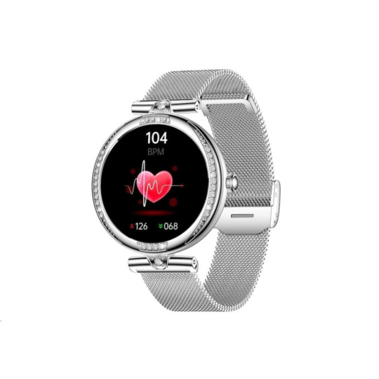 Luxusné dámske fitness hodinky CARNEO Seinna HR+ strieborné sú skutočným šperkom na ruke každej ženy. Kovové telo osadené brúsenými kameňmi pritiahne pohľady všetkých. S farebným SUPER AMOLED displejom monitorujú vašu dennú aktivitu a je možné ich spárovať s mobilným telefónom, vďaka čomu môžete vybaviť telefónny hovor priamo zo zápästia, alebo vás upozorní na prichádzajúci hovor, SMS alebo správu z aplikácií.