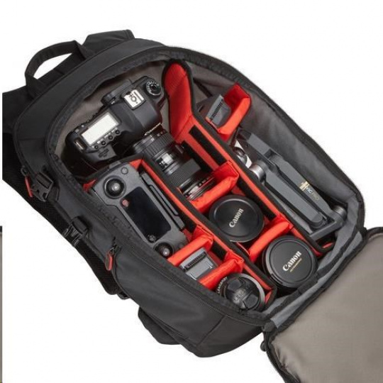 - Navrhnutý pre zrkadlovku s nasadeným objektívom (až 70-200mm), DJI Mavic Pro (alebo iný dron až do rozmerov 320 mm x 260 mm x 120 mm) a rad ďalšieho príslušenstva.