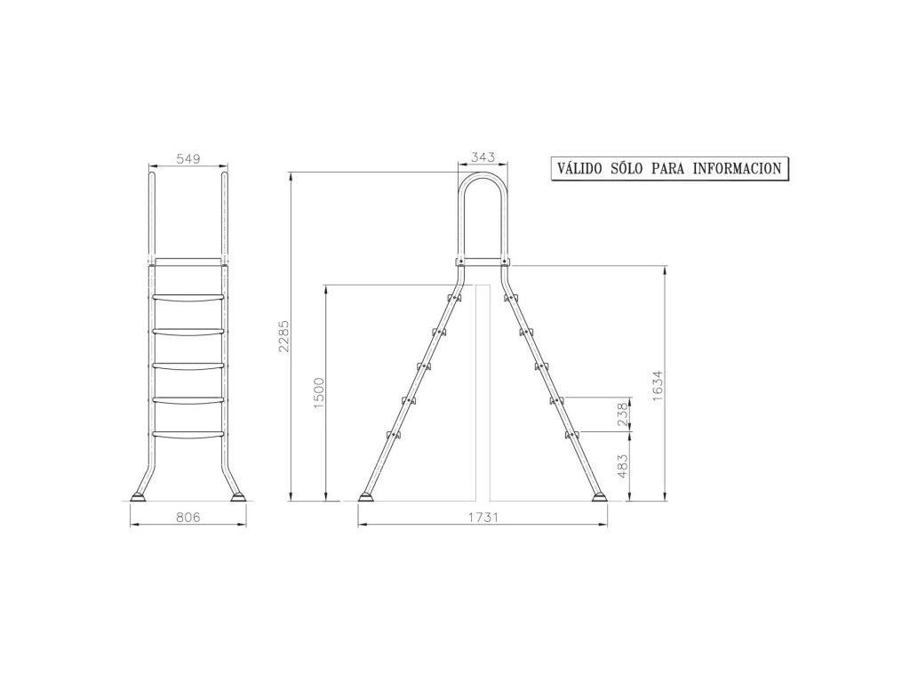 Bazénový rebrík pre bazény so stenou až 150 cm, vyrobený z kvalitnej nerezovej ocele, ktorá zabezpečí jeho dlhú životnosť. Rebrík má silné stabilné plastové stupnice a plošinu s protisklzovou úpravou, unesie hmotnosť až 150 kg. Rebrík má 5 stupňov na vnútornej a vonkajšej strane. Nohy rebríka sú zakončené koncovkami z protisklzovej gumy so stabilnou podložkou, ktoré zabraňujú nechcenému pohybu rebríka a zvyšujú tak bezpečnosť. Zároveň zabraňujú poškodeniu vášho bazéna.