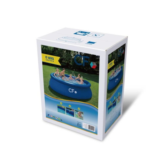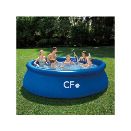 Pripravte sa na teplé počasie a nekonečné hodiny vodných radovánok na vlastnej záhrade so samonosným nadzemným bazénom CF QUICK. Tento nadzemný bazén v modrej farbe je navrhnutý pre jednoduchú montáž a môže byť pripravený počas niekoľkých minút. Stačí len pripraviť správne miesto na bazén, rozprestrieť bazénovú podložku, rozbaliť bazén, nafúknuť prstenec a napustiť vodu. Stúpajúca voda bazén sama postaví. Tento kruhový nadzemný bazén s priemerom 366 cm je ideálny pre celú rodinu a vďaka absencii pevných prvkov je vhodný aj pre menšie deti (deti musia zostať pod dohľadom dospelej osoby). Bazén je vyrobený z odolných a super pevnych PVC materiálov, aby bolo zaistené, že zostane stáť aj pri všetkej zábave, ktorú tento bazén ponúka.