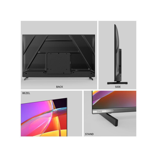CHiQ 43“ L43QST, ultratenká bezrámečková QLED Smart Android 14 TV s HDR10, HLG, obrazovkou s Full HD s rozlíšením 1920 x 1080 pixelov, priestorovým zvukom Dolby Audio a dbx-tv.