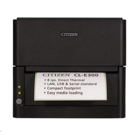 Malá veľkosť novej tlačiarne Citizen CL-E300 z nej robí ideálnu tlačiareň do priestorovo obmedzených prostredí, ale napriek tomu umožňuje tlačiť štítky so šírkou až 104 mm, ktoré možno tlačiť na 127 mm papier. Vďaka štandardnej sieti Ethernet LAN a rozhraniam USB a sériovému rozhraniu je CL-E300 ideálny pre všetky aplikácie. Integrovaný webový a konfiguračný systém LinkServer™ spoločnosti Citizen umožňuje úplné ovládanie tlačiarne. CL-E300 má verzie s rozlíšením 203 dpi a 300 dpi, ako aj možnosti rezania a lúpania, čo umožňuje použitie v akejkoľvek aplikácii priamej termálnej tlače s nízkym až stredným objemom.