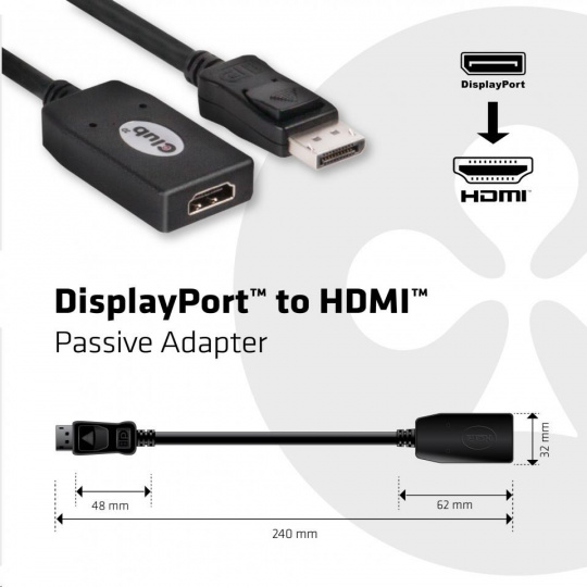 - Pasívny adaptér Club 3D DisplayPort ™ na HDMI ™