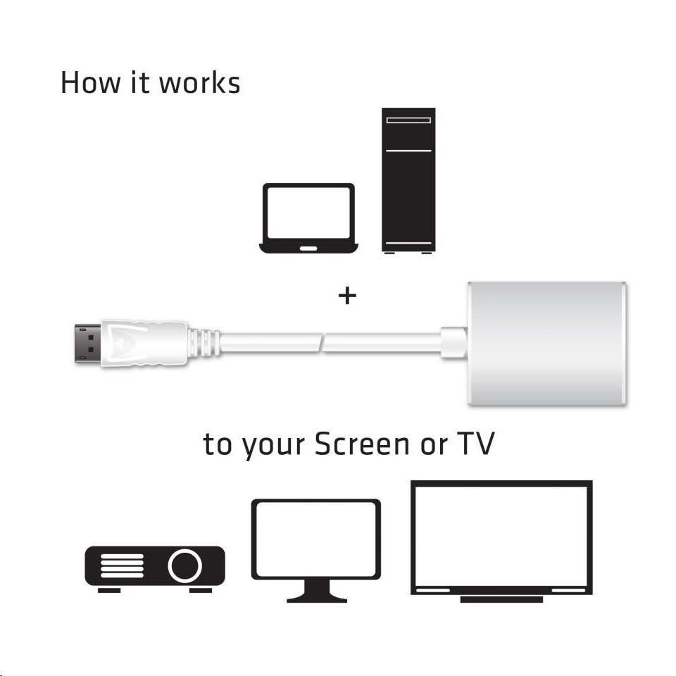 Adaptér je plne plug and play, takže nie je potreba inštalovať ovládače a je napájaný z výstupu DisplayPort ™.