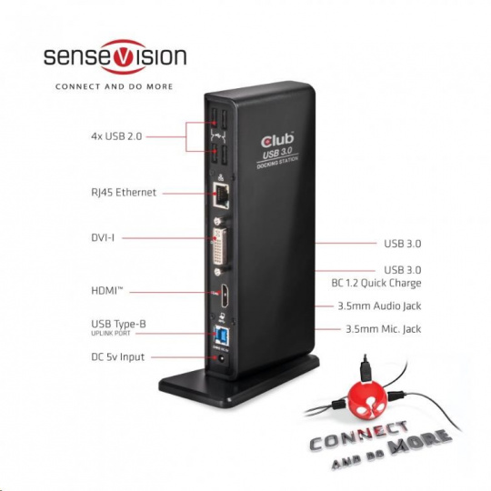 Vďaka čipu DisplayLink ™ DL-3900 je možné k dokovacej stanici pripojiť dva externé monitory s vysokým rozlíšením prostredníctvom výstupov HDMI ™ a DVI-I. Má ethernetový port RJ 45 pre spoľahlivé a rýchle drôtové pripojenie k sieti a ponúka celkom 6 portov USB pre periférie a pamäťové zariadenia, rovnako aj výstup zvuku a mikrofónu. To všetko je pripojené k vášmu zariadeniu pomocou jediného kábla USB.