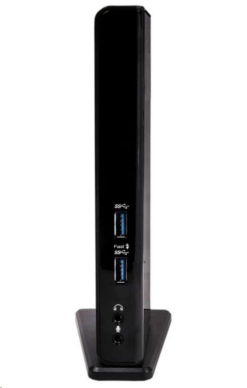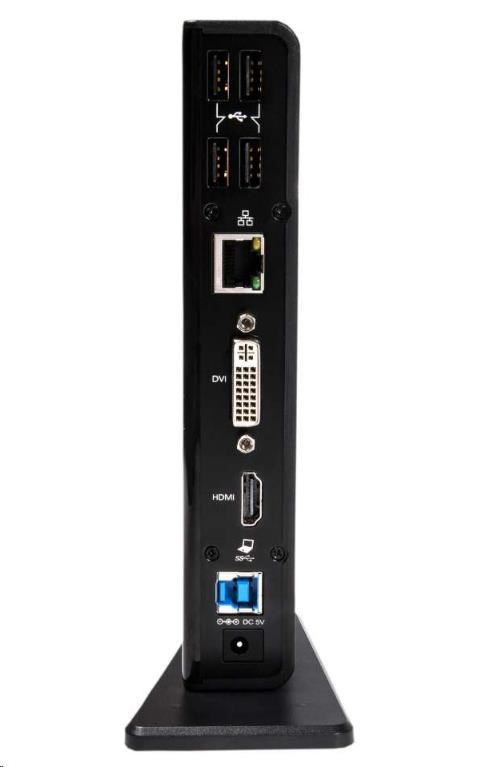 Vďaka čipu DisplayLink ™ DL-3900 je možné k dokovacej stanici pripojiť dva externé monitory s vysokým rozlíšením prostredníctvom výstupov HDMI ™ a DVI-I. Má ethernetový port RJ 45 pre spoľahlivé a rýchle drôtové pripojenie k sieti a ponúka celkom 6 portov USB pre periférie a pamäťové zariadenia, rovnako aj výstup zvuku a mikrofónu. To všetko je pripojené k vášmu zariadeniu pomocou jediného kábla USB.