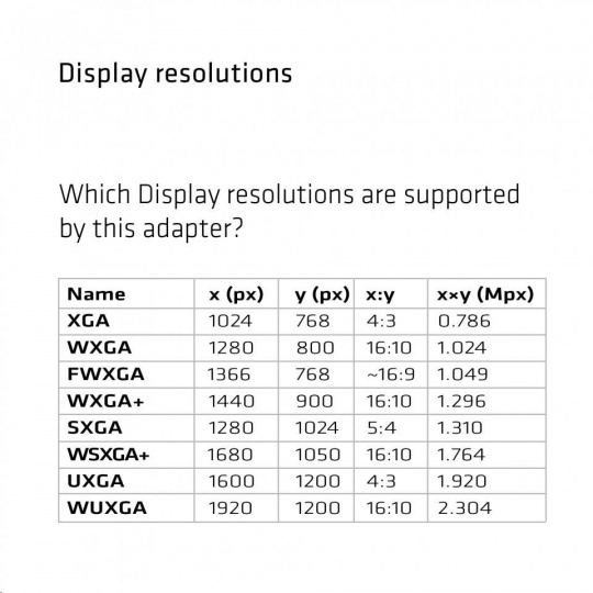 - Podporuje rozlíšenie monitoru až WUXGA 1920 x 1200p @ 60Hz