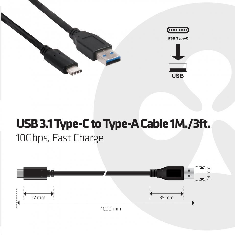 Kábel USB Club3D 3.1 Type-C na USB 3.1 Typ A, 10Gbps Power Delivery 60W (M/M), 1m