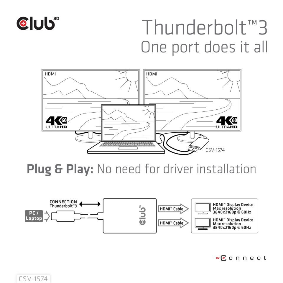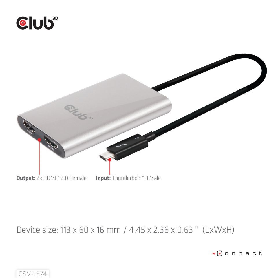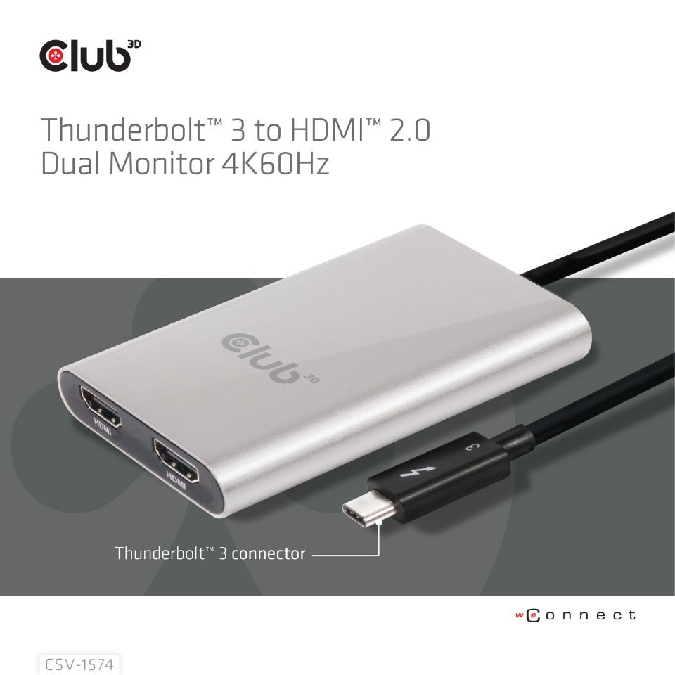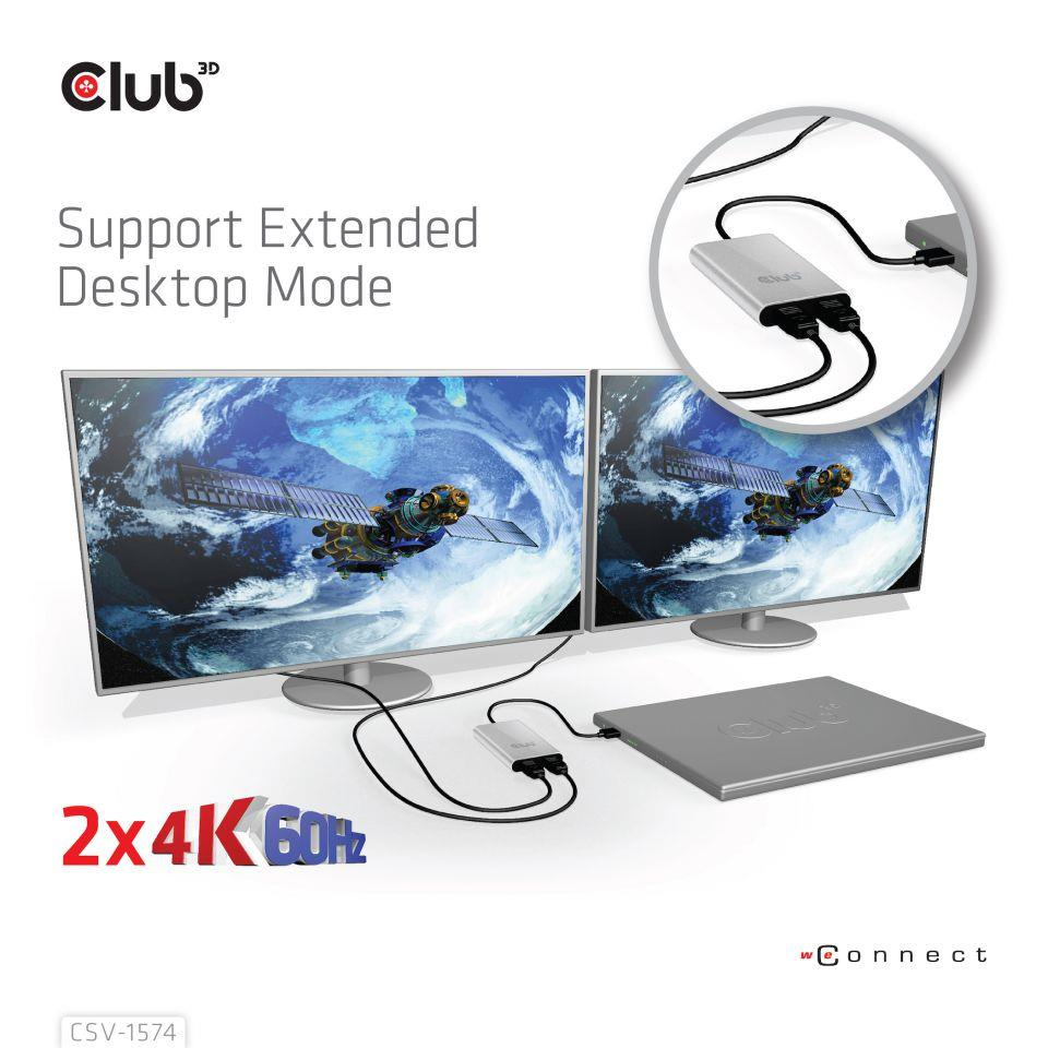 Club3D Adaptér Thunderbolt 3 na 2x HDMI 2.0 4K60Hz UHD