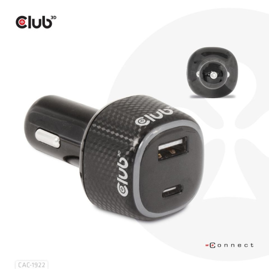 Club 3D CAC-1922 je vysoko výkonná a módna dizajnová max. 63W nabíjačka do auta s podporou QC3.0 a Power Delivery (PD). S touto nabíjačkou môžete nabíjať akékoľvek zariadenia (napríklad digitálne fotoaparáty, PDA, notebooky, mobilné telefóny, USB príslušenstvo) s vaším autom, keď je to potrebné. Je vybavená dvomi USB konektormi (jeden konektor USB Type-C a jeden konektor USB Type-A) na napájanie. Tento produkt umožňuje nabíjať dve zariadenia súčasne a dosahuje maximálny výkon 63 wattov. Port USB-C je špeciálne navrhnutý pre zariadenia s podporou typu C. Aby sa rozlíšilo medzi QC a PD nabíjaním, LED kontrolka sa rozsvieti modro pre Quick Charge (QC) alebo červeno pre Power Delivery (PD).