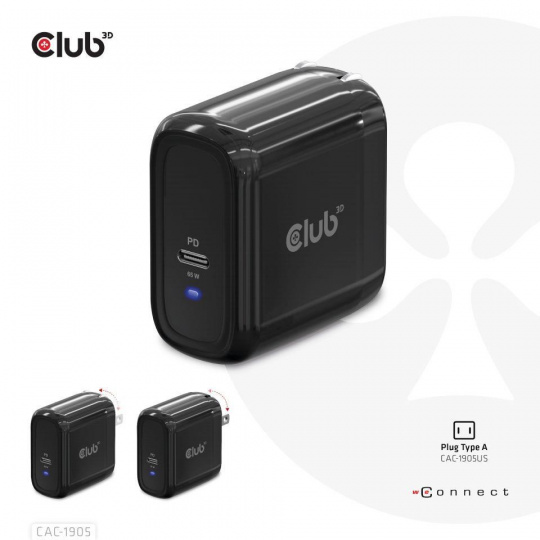 Cestovná nabíjačka Club3D CAC-1905 PPS 65W technológia GAN, jeden port USB typu C, Power Delivery(PD) 3.0 Podpora. Kompaktné rozmery a vynikajúci výkon: Vďaka čipovej súprave s technológiou GAN je táto nabíjačka o 50 % menšia ako 65W nabíjačka MacBook, dostatočne malá na to, aby ste ju mohli nosiť kamkoľvek so sebou.Programovateľný napájací zdroj (PPS) 65W nástenná nabíjačka sa hodí na rôzne zariadenia PD od smartfónov po notebooky, pričom nabíjanie je jednoduché pre všetkých. Táto nabíjačka so širokou kompatibilitou bude vaším pohodlným spoločníkom počas služobnej cesty alebo dovolenky.