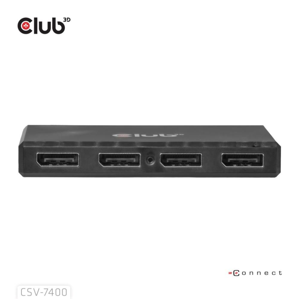 Club3D hub MST (Multi Stream Transport) DisplayPort 1.4 na 4x DisplayPort, Quad monitor, 4x 4K30Hz, 8K30Hz