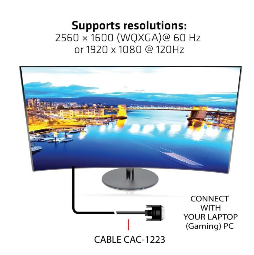 Club 3D CAC-1223 je kábel DVI-D(24+1) Male na DVI-D(24+1) Male. Tento kábel je plne obojsmerný. Tento kábel CAC-1223 je najjednoduchším riešením na pripojenie monitora DVI-D, projektora alebo televízora k výstupu DVI-D počítača/notebooku/hernej konzoly.