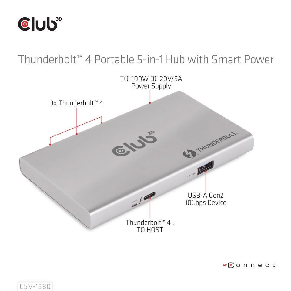 Club3D hubThunderbolt 4 Portable 5-in-1 Hub with Smart Power