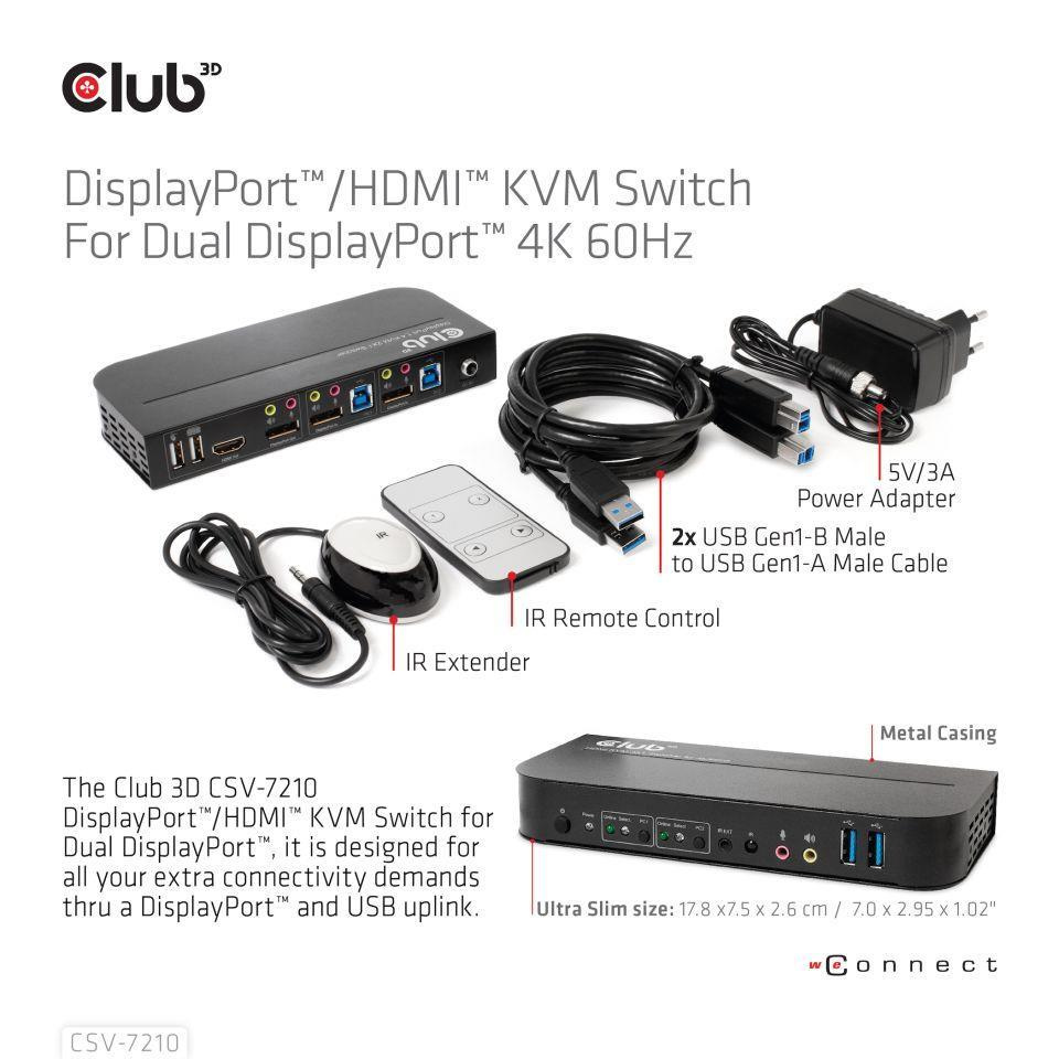 Club3D Network Switch - Prepínač, DP/HDMI KVM prepínač - Dual DP 4K 60Hz