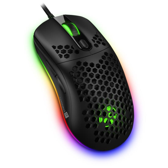 Okrem bežných funkcií je táto myš jedinečná svojou odlehčenou konštrukciou. Vďaka perforácii tela myši a tlačidiel špeciálnym hexagonálnym tvarom, ktorým došlo k zníženiu váhy myši o 50%. Tento typ perforácie zabezpečí maximálny grip a stabilitu pri dlhodobom hraní. K tejto myši je dodávaný softvér na stiahnutie úplne zadarmo na stránkach www.connectit-europe.com. Samozrejmosťou je u tejto série prémiový opletený napájací kábel a pozlátený USB konektor.
