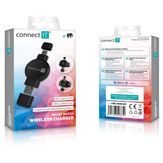 Bezdrôtová nabíjačka WatchTravelCharge kompatibilná ako s Apple Watch, tak s Samsung Watch. Vďaka kompaktným rozmerom je ideálnym spoločníkom na cesty. Podporuje 2,5 W Qi nabíjanie.
