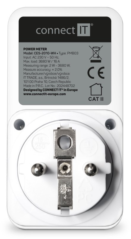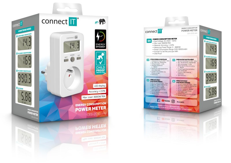 Digitálny merač CONNECT IT "PowerMeter" s jednoduchým dizajnom slúži na meranie spotreby elektrickej energie rôznych domácich spotrebičov. Merač disponuje veľkým LED displejom a jednoduchým ovládaním. Vďaka tomu je veľmi prehľadný a spoľahlivý.