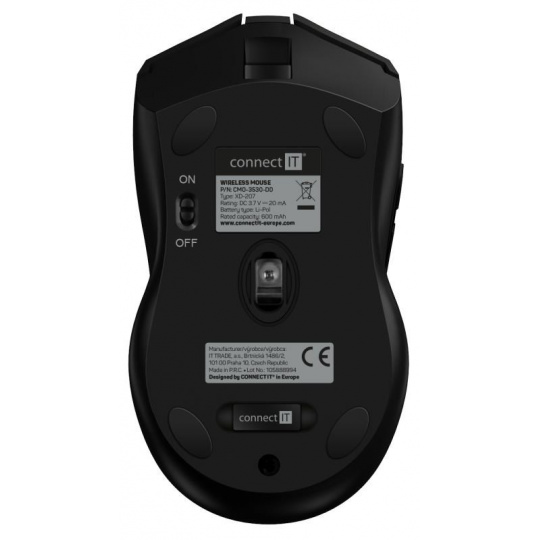 - Prepínač zapnutia/vypnutia na úplné vypnutie myši s cieľom šetriť batériu