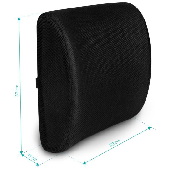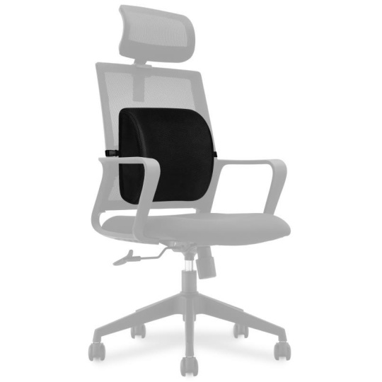 Bederná opierka na stoličku s ergonomickým dizajnom pre maximálne pohodlie a podporu bedrovej časti chrbta. Univerzálne prevedenie pre použitie na kancelárskych a herných stoličkách, sedadlách v aute, sedačkách, invalidných vozíkoch a iné.