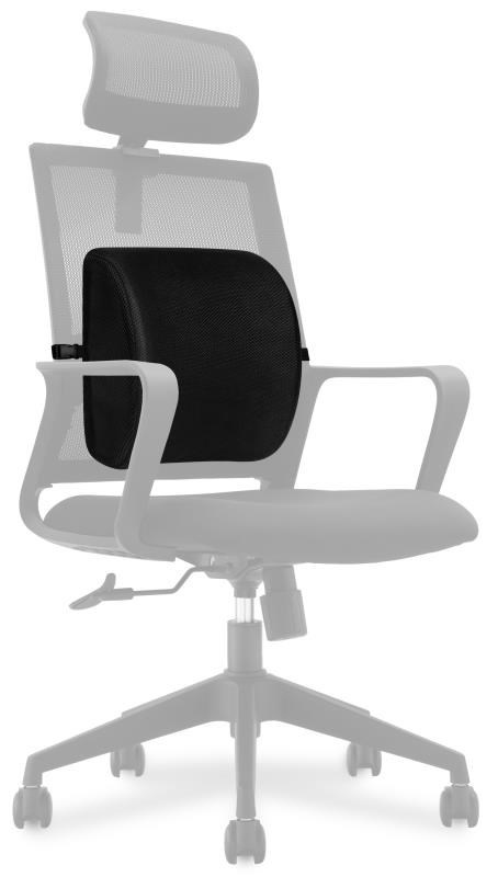 Bederná opierka na stoličku s ergonomickým dizajnom pre maximálne pohodlie a podporu bedrovej časti chrbta. Univerzálne prevedenie pre použitie na kancelárskych a herných stoličkách, sedadlách v aute, sedačkách, invalidných vozíkoch a iné.