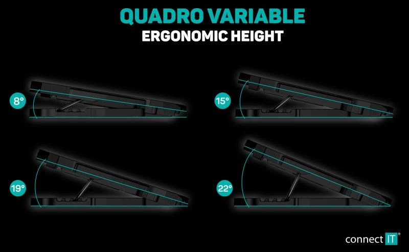 • Nastaviteľná výška v 4 rôznych stupňoch (8°, 15°, 19° a 22°)