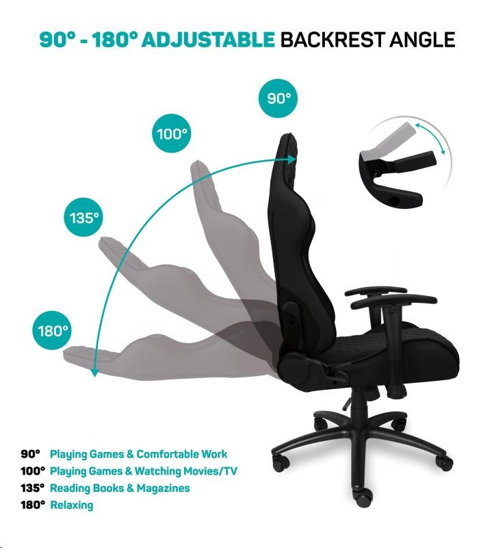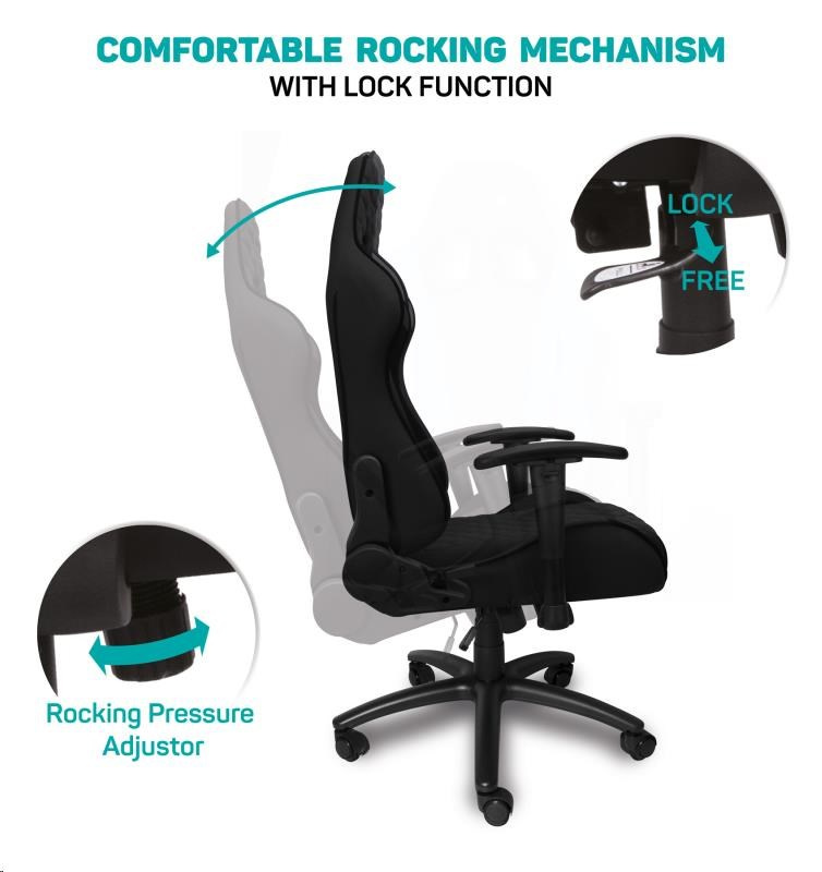 Vyniká luxusným spracovaním, moderným ergonomickým dizajnom a veľmi stabilnou konštrukciou. Mnohoraké nastavenia vyhovujú každej postave. Dizajn bol špeciálne navrhnutý pre dlhodobé sedenie a umožňuje aj bežnú prácu doma i v kancelárii. Ideálne pre mnohohodinové hranie bez kompromisov.