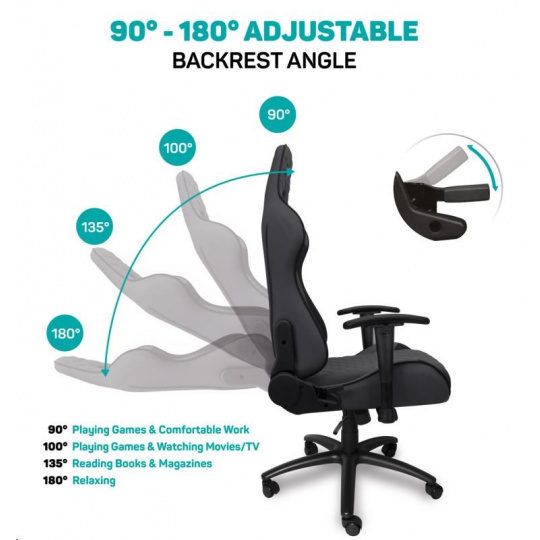Vyniká luxusným spracovaním, moderným ergonomickým dizajnom a veľmi stabilnou konštrukciou. Mnohotvárne nastavenie vyhovie každej postave. Dizajn bol špeciálne navrhnutý pre dlhodobé sedenie a umožňuje aj bežnú prácu doma alebo v kancelárii. Ideálne pre mnohohodinové hranie bez kompromisov.