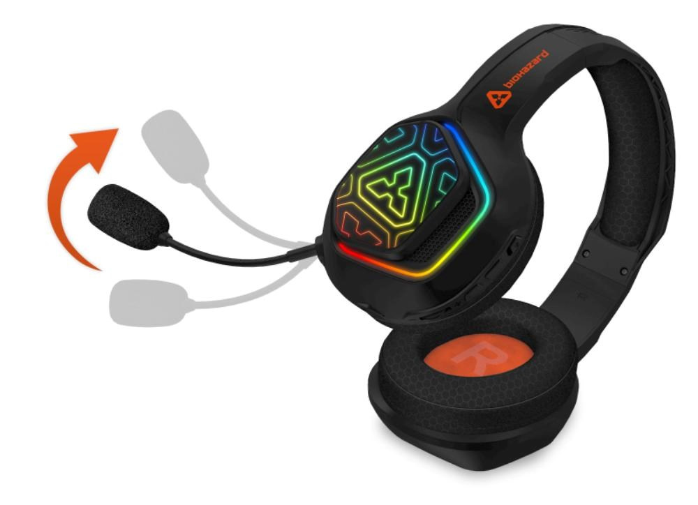 Profesionálne herné bezdrôtové slúchadlá s pripojením 2,4 GHz a BT "Biohazard Wireless" s odnímateľným mikrofónom a RGB Rainbow podsvietením pre hráčov počítačových hier.
