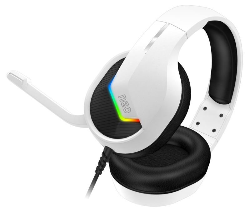 Profesionálne herné slúchadlá s výklopným mikroónom NEO s podsvietením pre hráčov počítačových hier. Slúchadlá sú vybavené RGB Rainbow podsvietením, ovládaním hlasitosti, sklápacím mikroónom a obľúbenými pozlátenými konektormi. V balení nájdete aj adaptér 3.5 mm jack pre maximálnu kompatibilitu a arch promo samolepky hernej rady NEO.