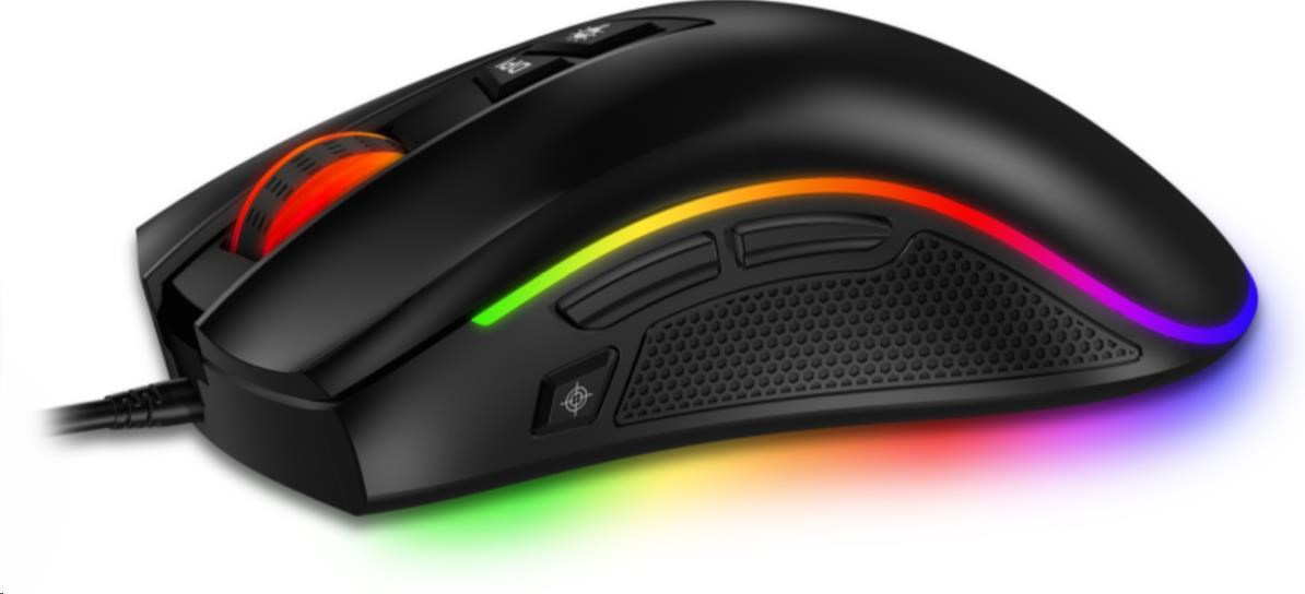 Profesionálna herná myš z edície NEO+ SERIES pre hráčov počítačových hier s ôsmimi nastaviteľnými tlačidlami, presným optickým snímačom a plnou podporou používateľských makier.