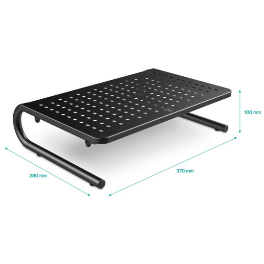 Multifunkčný kovový podstavec je ideálny pre všetky monitory, notebooky a iné zariadenia. Podstavec ponúka jednoduchý, ale elegantný dizajn, ktorý ľahko zapadne do každej kancelárie či interiéru. Špeciálna dierovaná konštrukcia podstavca zabezpečuje odvod horúceho vzduchu z notebooku a tým zabraňuje jeho prehrievaniu.