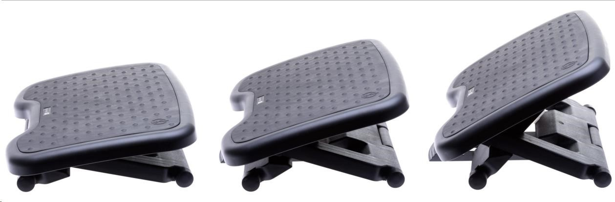 Popis produktu: Nastaviteľná opierka nôh Nastaviteľná výška a uhol pre maximálny komfort a pohodlie Výška: 110 - 124 mm Protišmykové podložky pre väčšiu stabilitu Farba: čierna Masážny hrboľatý povrch pre unavené nohy..